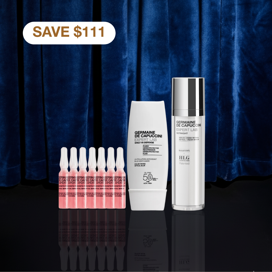 This powerful combination pairs EGF Growth Factor Vials (AM) with Retinight Retinal Renewal Serum (PM) to rebuild, resurface and brighten the skin from every angle.
